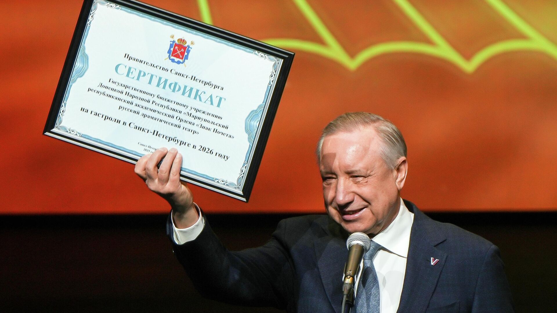 «Последний раз мариупольский театр выступал в Санкт-Петербурге 40 лет назад... Мы с нетерпением ждём вас на гастролях», — отметил Беглов.
